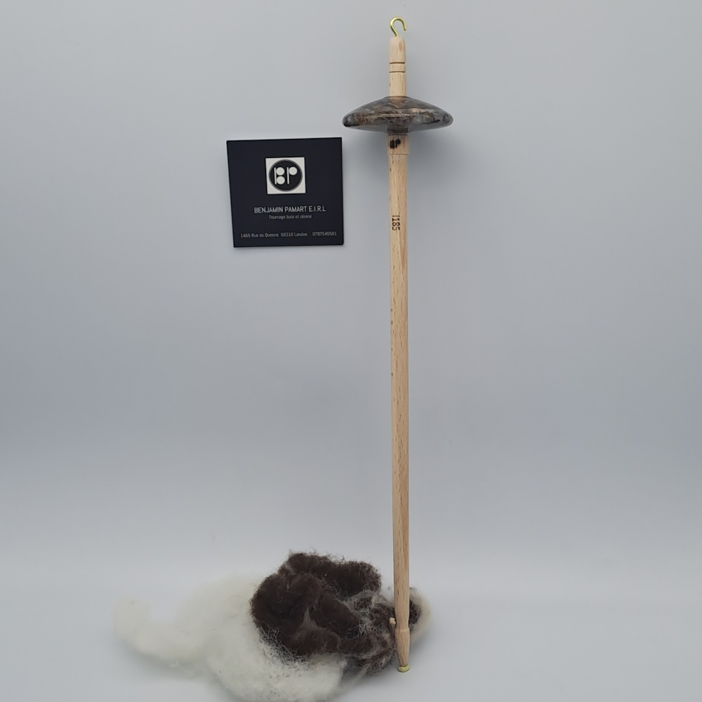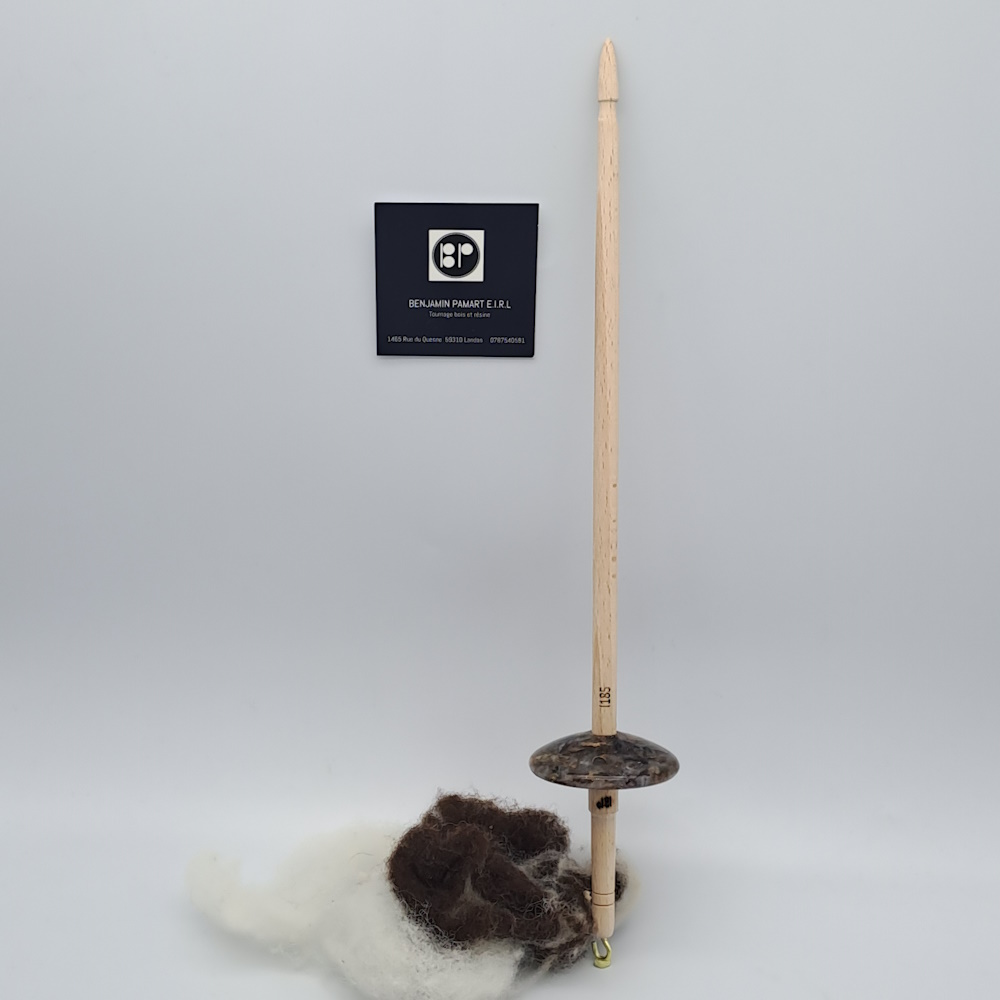 L’axe en hêtre, au toucher soyeux, offre une excellente ergonomie pour un filage fluide et régulier.