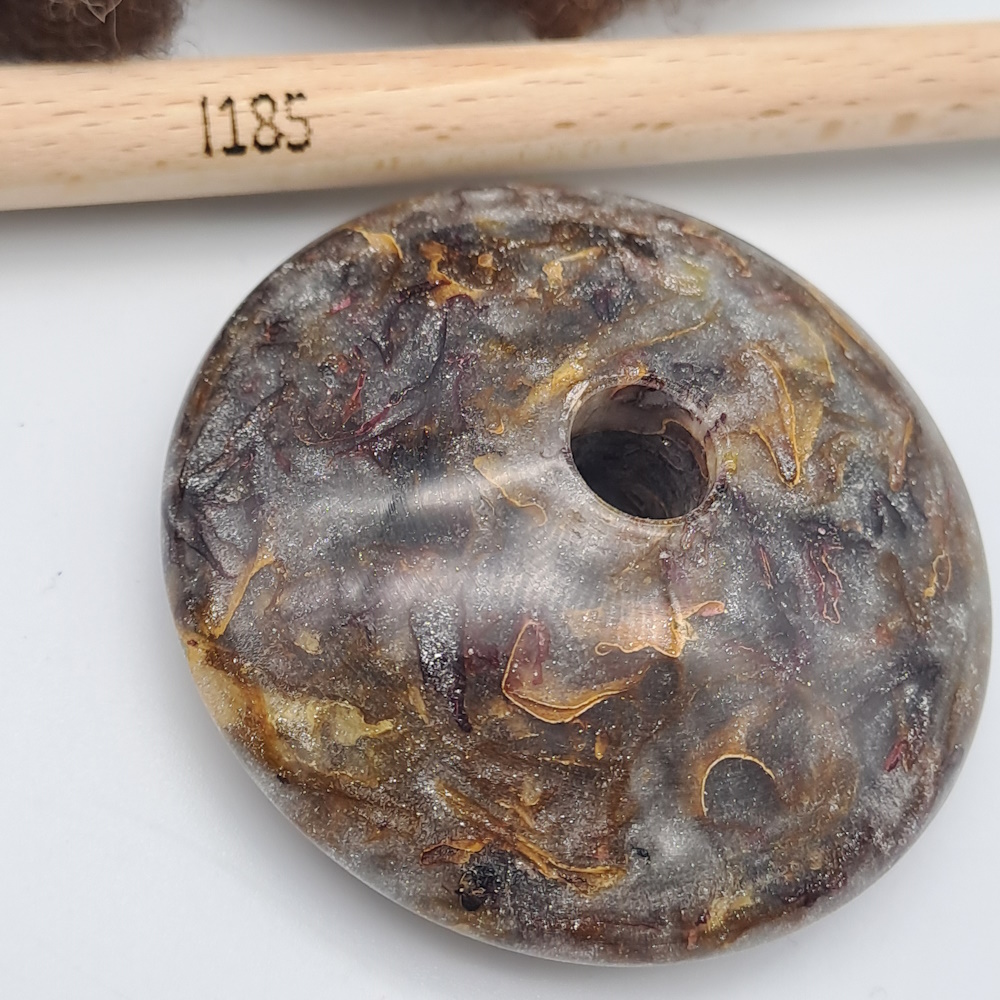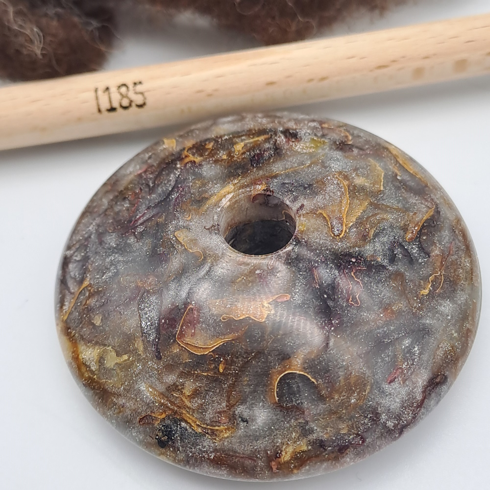 ✔️ Une pièce unique – Fusaïole en résine artisanale avec inclusion de pétales de roses naturelles et de pigments argentés.