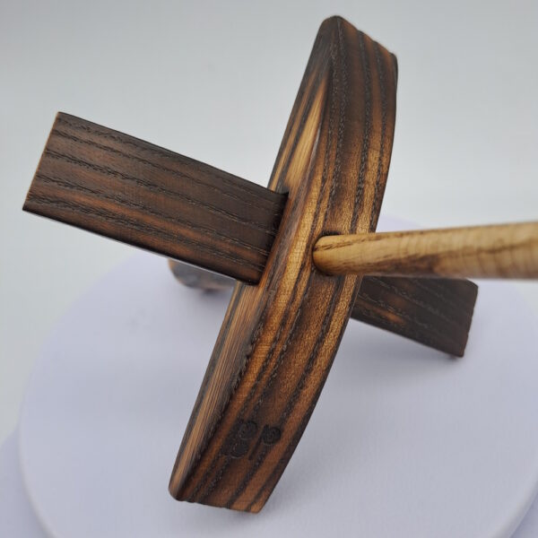 Chaque fuseau est conçu pour allier esthétique et performance. Sa forme turque facilite le déchargement du fil, tout en maintenant une belle régularité de rotation. Ce modèle met en valeur les courbes du bois travaillé au feu, une technique qui crée des contrastes uniques sur chaque pièce. Le résultat ? Un outil inspirant et performant, pensé pour accompagner vos gestes en toute fluidité.